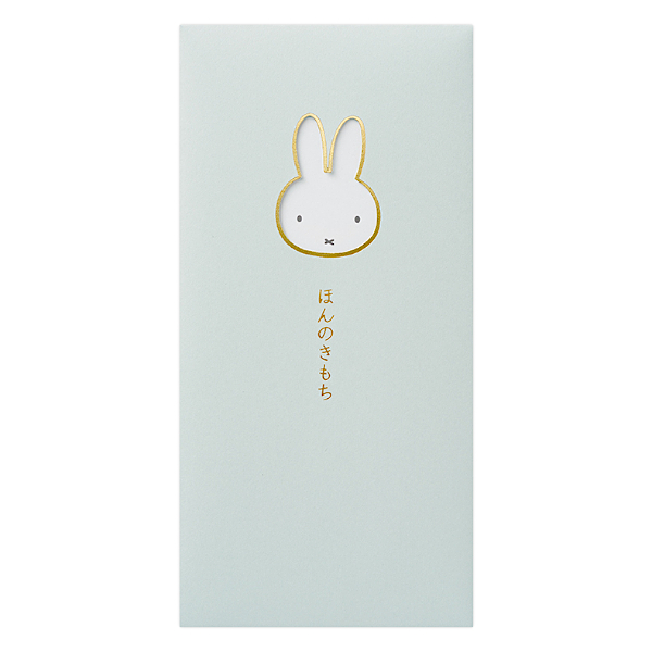 淡い水色に「ほんのきもち」の文字とミッフィー顔が箔押しでプリントされています。